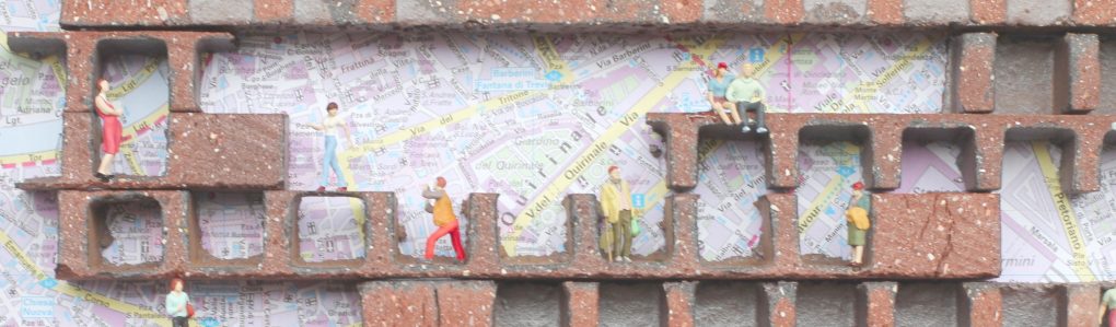 Diese habe ich dann maßstäblich verkleinert (M 1:5) zugeschnitten,“vermauert“und mit Streifen aus Graupappe „verfugt“.